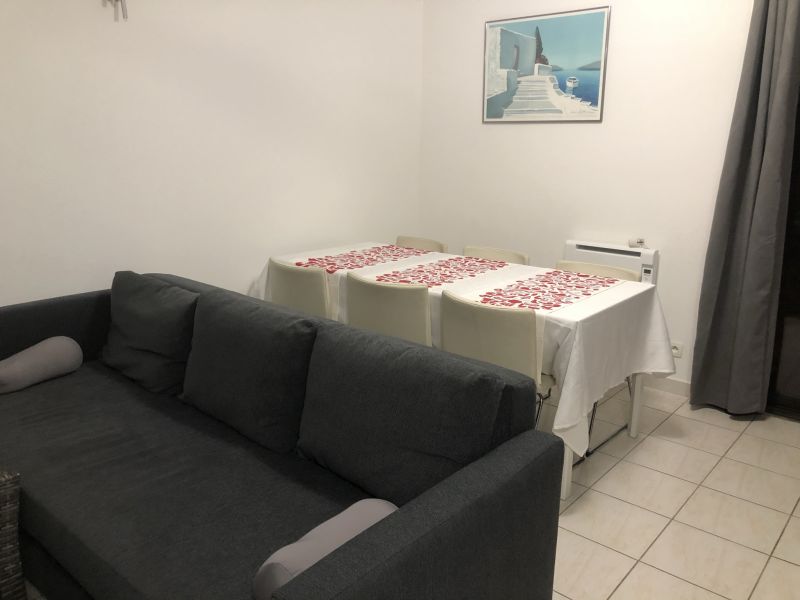 - salon – salle à manger avec 1 canapé convertible pour 2 personnes, TV, 1 table et 6 chaises